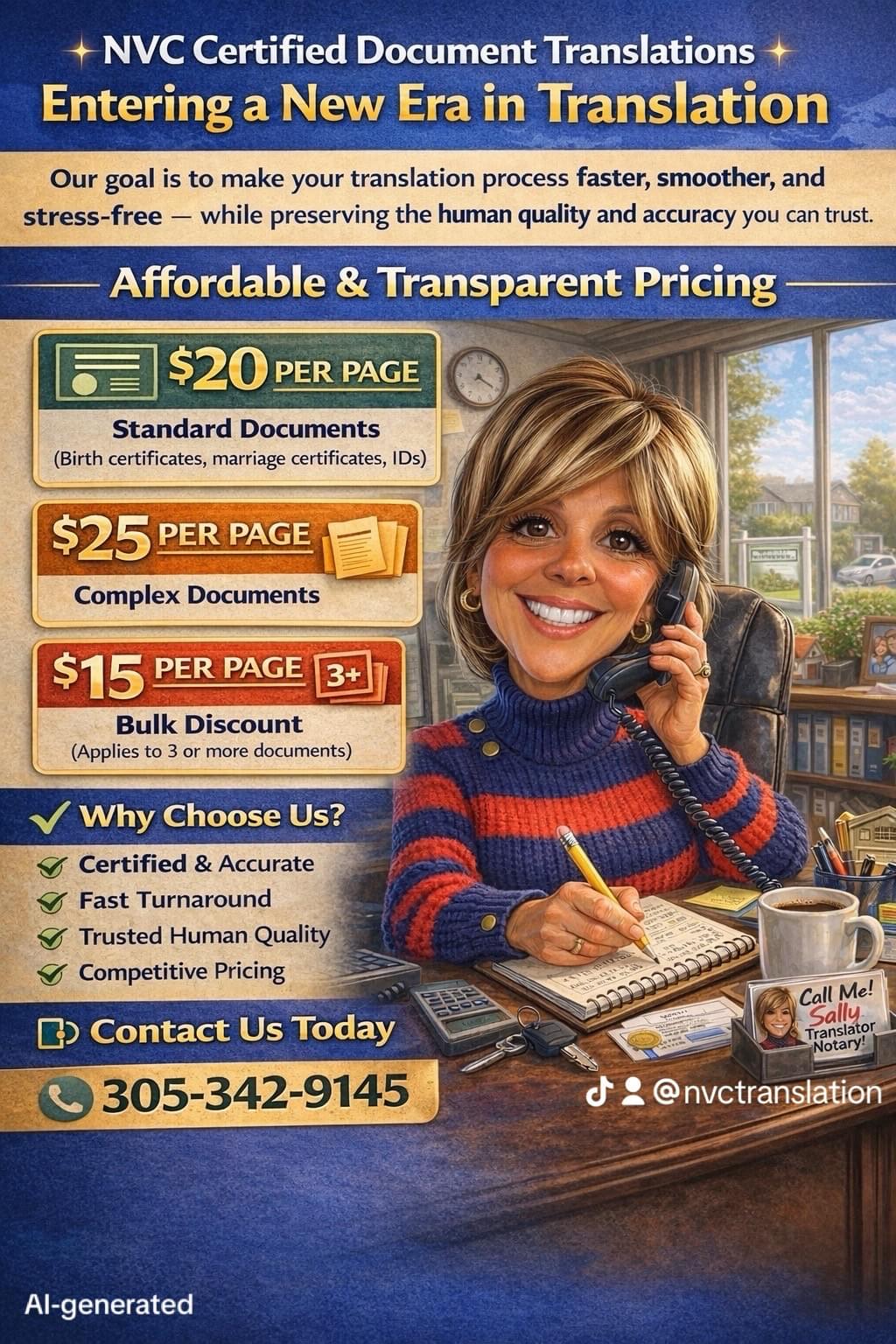 As we all know we’re in a new era, one that we must adjust how we price translation services. My goal is to make the process smoother and faster while preserving the human quality and accuracy you can trust, even as AI tools continue to evolve.